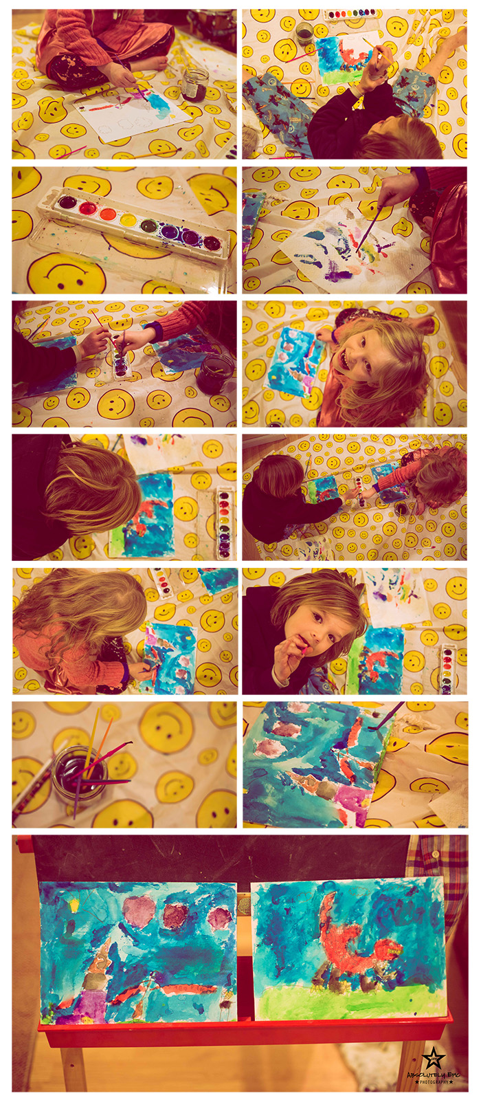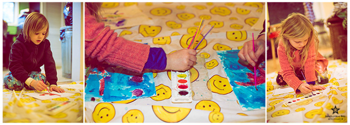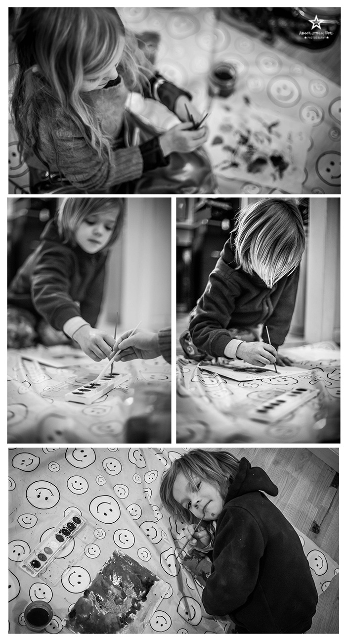 Which brings me too the photos I wanted to share with you. Here we have been having a cold winter and quite a few snow days. Usually we would go out and play in the snow but the temps have been so bitter cold. I myself love snow days! Love having my family in the house together. Playing, cuddling, laughing, watching movies, and whatever may arise. The cool thing about snow days is there is a reason school is out…it is nasty outside! So that means we aren’t busy running around town. We are all together. Those are the days they will remember later on. I have been working on a few art projects lately and the kids want part it. I think art is very important in developing young minds. As we already know imagination is a must for developing areas in the brain that otherwise would not open. You should see my house right now with all this cold weather! There’s a project going on in every corner I swear! So I broke out the plastic table cloth and let them go! These photos may not be the “best” out there and I didn’t take any time really editing them…but they are special to me. Sometimes the most precious photos are the snapshot you take when people are doing there own thing. NO posing! They had a blast and of coarse ended up painting each other by the end. But it was all contained to the good ole trusty plastic table cloth. Of which I have several depending on the space needed for their project! Lots of giggles ans smiles came along with it. So I encourage you JUMP! Don’t worry about the mess they might make. Break out the dollar plastic table cloth and let them get creative. Promise you will smile the whole time…well most of the time!