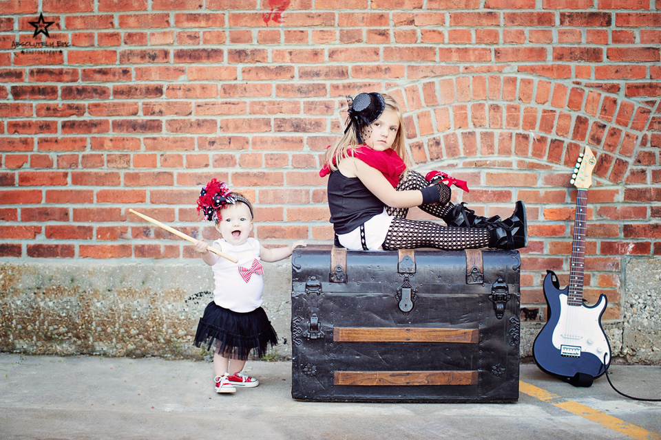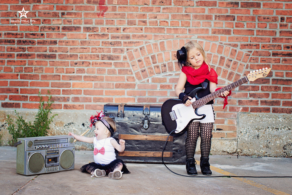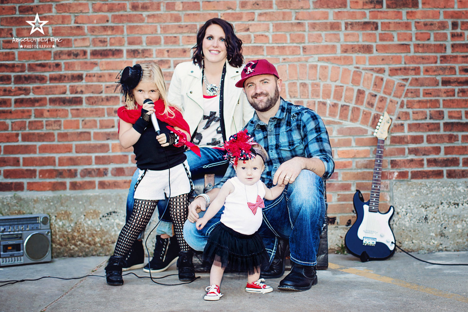 I was so pumped to shoot this session, from with in the first minute of talking with momma Gilmore! Ashley Gilmore along with Heidi Staeger, they own and run a local girls Clothing boutique called “Olive Branch Boutique.” Pretty much all the children’s clothing you can get from Olive Branch Boutique. I will give you a link of where to find it on the bottom of this blog entry. I have shot for the boutique before but not their family. Knowing this I knew it would be styled to the hilt. So obviously me loving stylizing sessions, my mind starting going nutz with ideas, along with Ashley! We decided on a Punk / Rock N Roll and Birthday Girls style of session. We actually added two sessions together…to kick it out in one time. Usually I don’t do this because it is hard on little ones for the amount of time it takes…but knowing these little ones. I knew if anyone could, her girls would pull it off! They not only pulled it off…they ROCK’ED it! I brought our live amps, guitars, mic’s, drum sticks and an old school radio! They loved that they got to hear themselves play instead of just “faking” the photos. Of coarse we had to get dad and mom in for a few! This is extraordinarily extra fun family! As you will see in the photos!