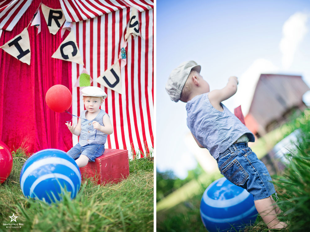 Two to three times a year I offer themed mini sessions. It allows me to get creative and satisfy my need to go overboard! I love shooting lifestyle photography…which is what I do most often. But, the themed sessions gives me a reason to make and create things…get crafty! Which is another love of mine. Although I am yet to “get my crafty on” till the night before.  😛 This session I had looked forward to for sometime. I actually had a trial run at it for my son Isaac’s birthday party 2 months prior, by throwing him a Circus party! To see what the kids were attracted to the most. Plus who doesn’t love the Circus? Here are some images from Layton’s mini session. He had a blast and kept me on the run. I might add he has a strong kick for a little guy. He had that ball up and down the field. What a cutie!Image